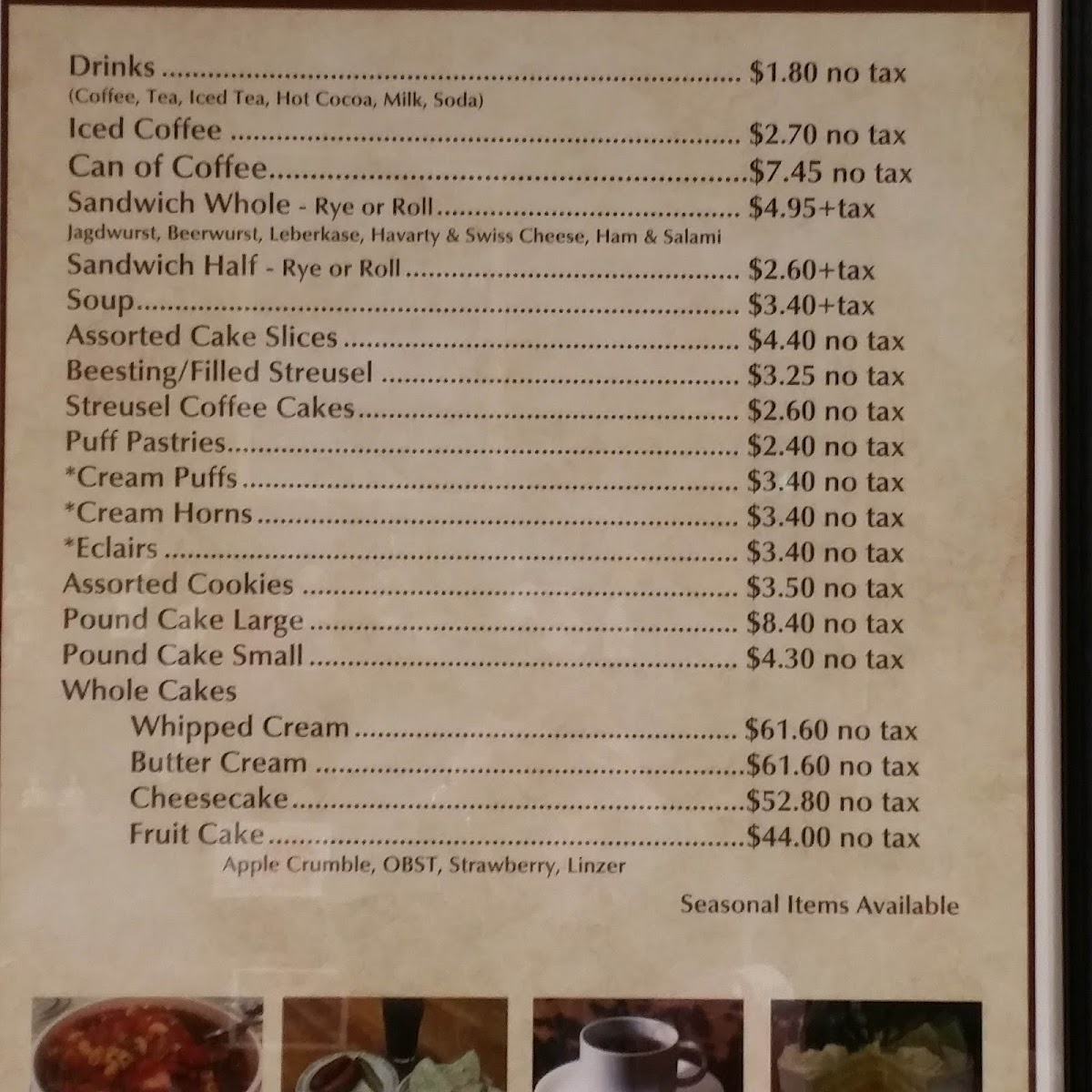 Hess Bakery & Deli Menu